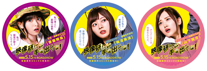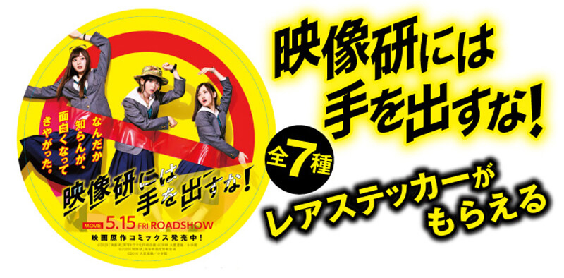 映像研の3人と大・生徒会3人、そして実写化第1弾ビジュアルを使用したレアステッカーの全7種が1冊につき1枚もらえるフェアを、全国書店にて実施中です。