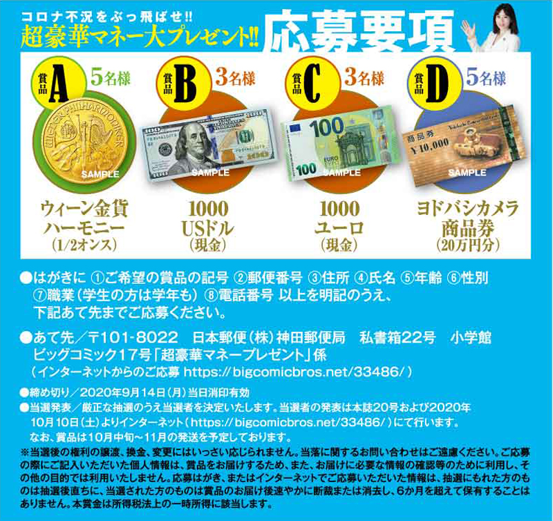 ビッグコミック 本誌17号「超豪華マネープレゼント」当選者発表!!