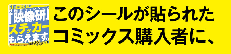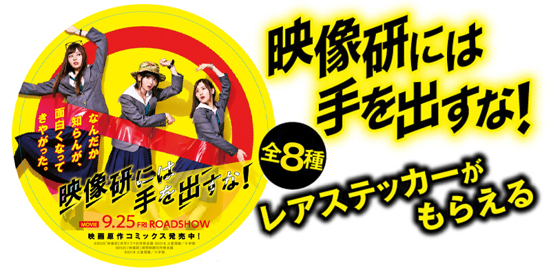 原作を購入すると、1冊につき1枚、映画映像研の3人や、大・生徒会の3人の特製ステッカーがもらえます。さらに今回は、音響部・百目鬼のステッカーも追加いたしました!!