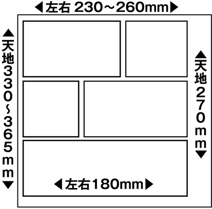 マンガ原稿用紙 左右230〜260mm マンガ原稿用紙天地330〜365mm 内枠左右180mm 内枠天地270mm