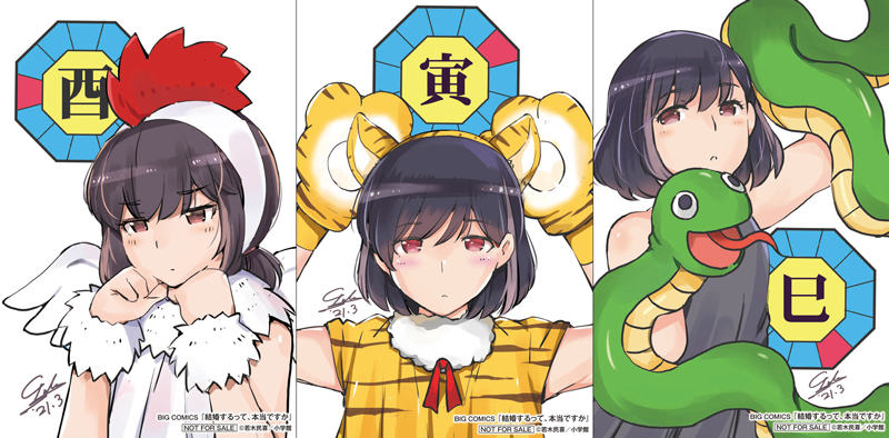 いま全国の一部書店で『結婚するって、本当ですか』を購入すると、地図好きの地味カワヒロイン・リカが動物のコスプレをしているキュートな描き下ろし特製イラストカードがもらえます。