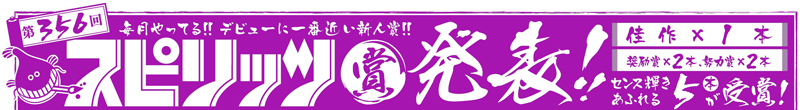 第356回スピリッツ賞に多数のご応募ありがとうございました。センス輝きあふれる5本が受賞