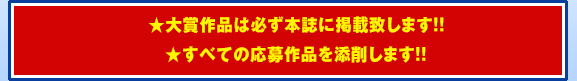 ⑤デジタル原稿の場合は、CD-RかMOで応募の上、プリントアウトしたものを必ず同封してください。なお、デジタルデータでの応募の場合、原稿返却はいたしません。応募される方は、手元にコピーを残しておいてください。