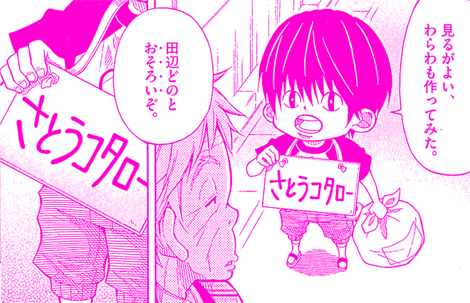 高 探偵の青田さんが来たとき(『強くなりたい』単行本第3集収録)に、青田さんが事前にコタローくんの父親にコタローくんが好きな遊びを聞いて、実際にそれをやったらコタローくんが、すぐに見抜いたじゃないですか。