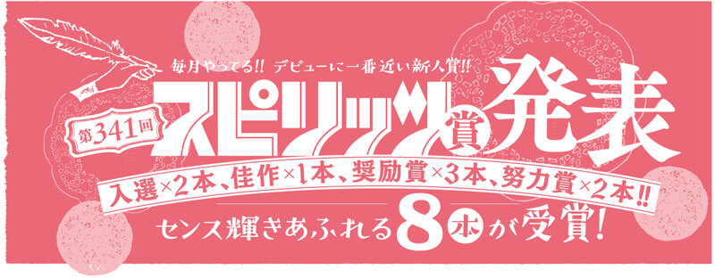 第341回スピリッツ賞に多数のご応募ありがとうございました。受賞作8作を発表いたします。