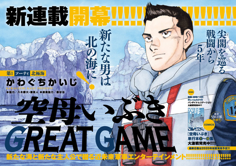 12巻で530万部を突破し、昨年実写映画化もされた超人気作『空母いぶき』は尖閣諸島周辺での中国軍との衝突が物語の中心だったが、新作『空母いぶきGREATGAME』は北極海で幕を開けた。新たな海と新たな主人公、そして大国が覇権を争う“グレートゲーム”を描く、新しい物語は