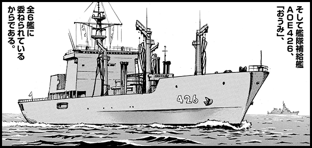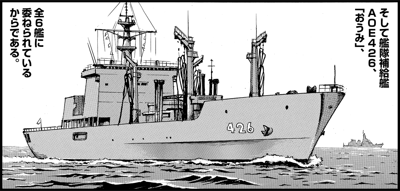 洋上で護衛艦に燃料や食料を補給することを任務とする補給艦で、1隻の護衛艦につき1時間程度で給油を完了することが可能。