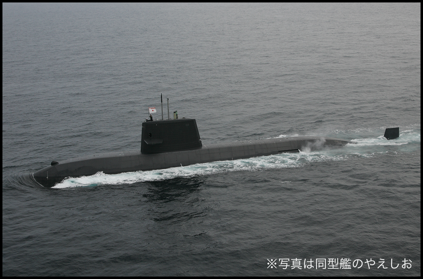 海自で初めて"葉巻型"の船体を採用し造られた、「おやしお」型潜水艦の10番艦。"涙滴型"と呼ばれる従来型の潜水艦と比べ、船全体が"耳"となっており、最新式のソナー統合システム(ZQQ6B)を搭載。ソナードームに雑音の影響を受けにくいゴム製の素材・システムを採用することで、魚雷発射管を艦首に持ってくることに成功している。