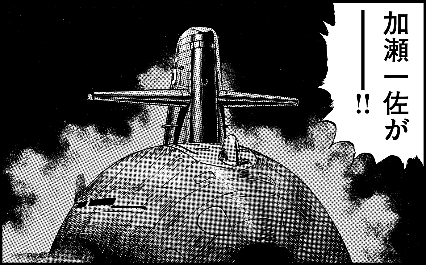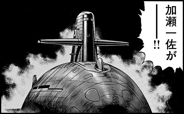 潜水艦SS599「せとしお」。艦長:加瀬利男一佐。海自で初めて"葉巻型"の船体を採用し造られた、「おやしお」型潜水艦の10番艦。"涙滴型"と呼ばれる従来型の潜水艦と比べ、船全体が"耳"となっており、最新式のソナー統合システム(ZQQ6B)を搭載。ソナードームに雑音の影響を受けにくいゴム製の素材・システムを採用することで、魚雷発射管を艦首に持ってくることに成功している。第5護衛隊群を守ろうと自発的に行動するなど、正義感と責任感の強い艦長が座乗しており、秋津艦長や滝艦長も、加瀬艦長に全幅の信頼を置いた発言をしている。