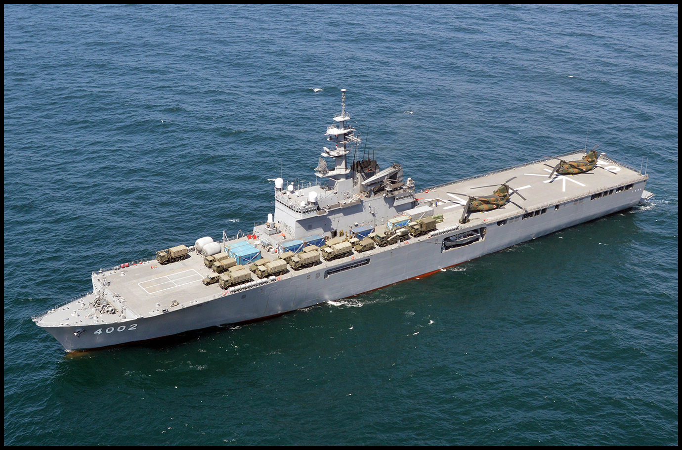 海上自衛隊の大型輸送艦、LST4002「しもきた」。